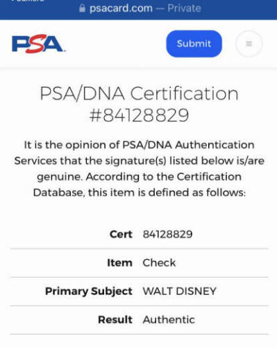 Walt Disney signed check includes TWO authentications: