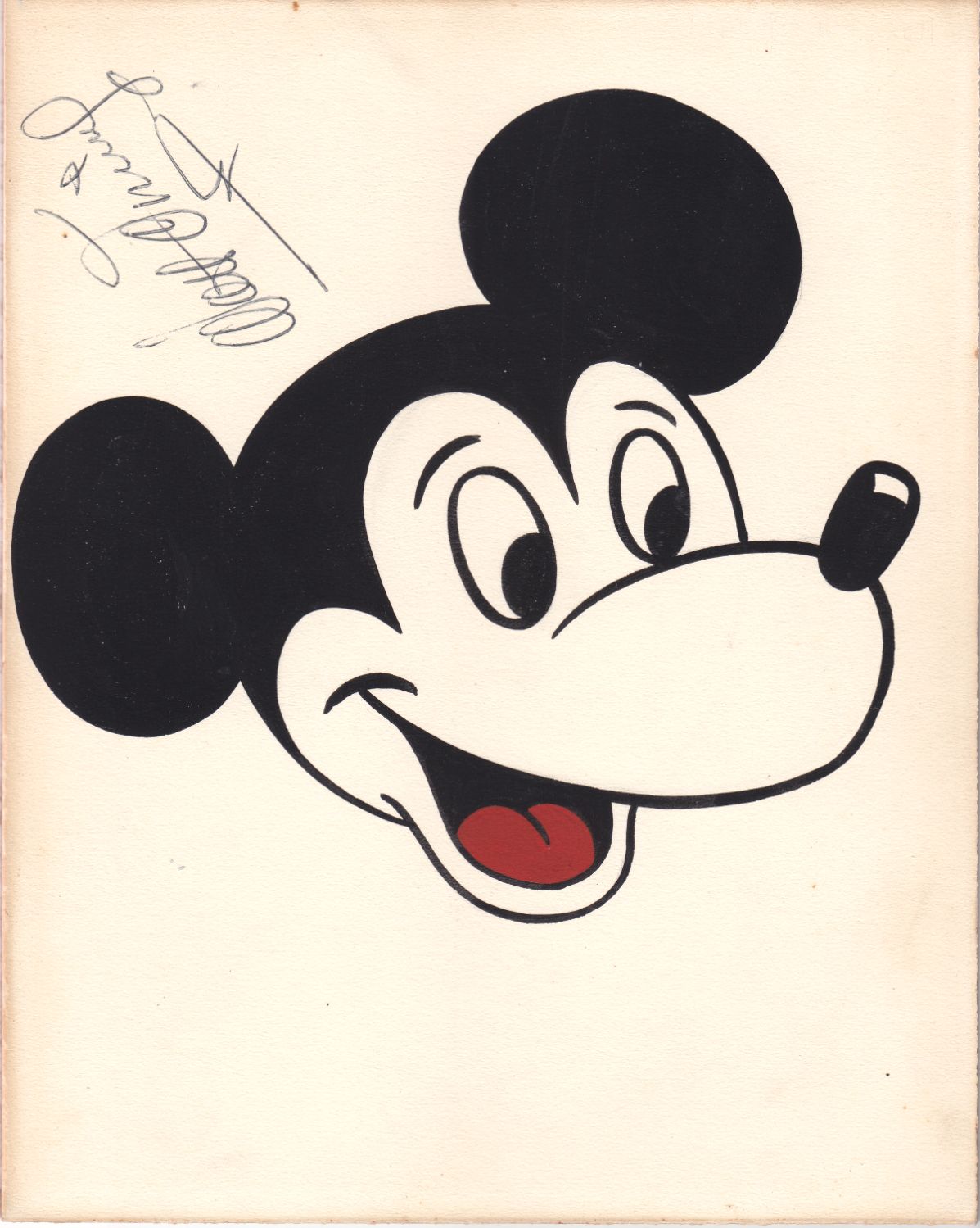 Rare Mickey Mouse Artwork Autographed by Walt Disney! Several locations in Walt Disney's boyhood home of Marceline, Missouri bear paintings or murals of Disney characters accomplished by local resident H. C. Futrell. This is his original test model for the Mickey Mouse drawings he painted around town. During one of Walt Disney's return visits-- which took place in 1956 and 1960-- Walt Disney autographed this Mickey art for Futrelll. Includes an email from the former owner: ... My grandfather, H. C. Futrell painted the Disney characters on the wall of the lobby in the uptown theater in Marceline, MO, I believe around October of 1960 (I'm not 100% on this, but it makes sense in context of history and the story). He had reference pieces of all of the characters he was going to paint. Walt Disney came by while he was working and was delighted with the work and offered to sign one reference work for each of my grandfather's children... Marceline was home to Walt Disney's during his formulative years, and the town's main street directly inspired the design and nostalgic feeling of Main Street, U.S.A. in Disney theme parks. Disney spent a significant portion of his childhood on a farm near the town, an experience that shaped his imagination, and he maintained a deep affection for Marceline throughout his life. The town now houses the Walt Disney Hometown Museum, celebrating his connection to the community. Although closed now, Futrell's art still graces the lobby of the Uptown Theater.More than just an autograph, this piece represents the importance of Walt Disney's original "Main Street USA" hometown and his connection with his most famous character creation, Mickey Mouse. Original artwork measures approximately 10" x 8". On 1/8" art board. Includes the Phil Sears Collectibles Lifetime Guarantee of Authenticity Certificate. Item #2699, $6995 About $699/Month on layaway!