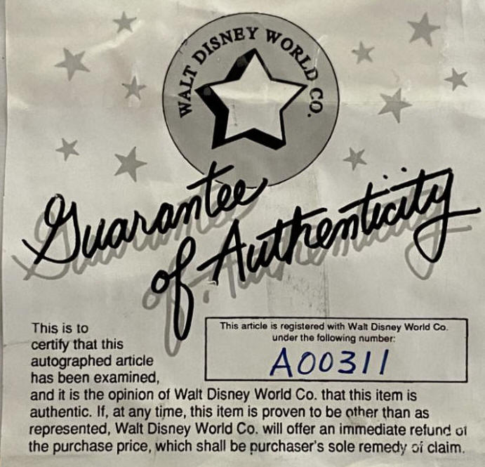 26.5" x 20.5". Includes BOTH the Walt Disney World authentication label